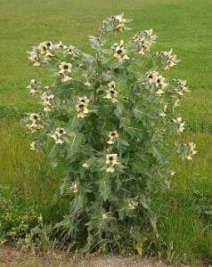 برطانیہ میں مرغی چوروں نے اجوائن خراسانی کے بیجوں کو اناج میں ملا کر مرغیوں کو دے دیا۔ مرغیاں رات بھر چکرا کر بے ہوش ہو گئیں،تو وہ انہیں اٹھا کر لے گئے۔ اجوائن خراسانی جسے کالی اجوائن بھی کہا جاتا ہے کو 1746-1788 کے دوران برطانیہ کے فارماکوپیا سے خارج کر دیا گیا تھا اور اسے 1809 میں دوبارہ رجسٹر کیا گیا تھا۔