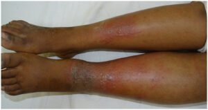 علامات: شدید خارش، سرخ دھبے، سوجن، آبلے، اور جلد پر جلن۔ چہرے اور پیروں پر ورم۔