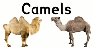 1۔ ایک کوہان والا عربی یا ڈرومیڈری (Dromedary, Camelus dromedarius) ۔
