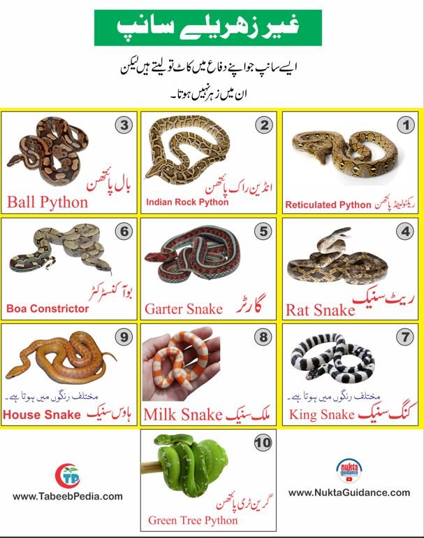 غیر زہریلے سانپ (Non-Venomous Snakes):