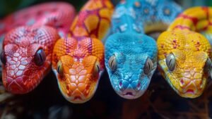 - ریٹکولیٹڈ پائتھن (Reticulated Python): دنیا کا سب سے لمبا سانپ، شکار کو لپیٹ کر مارتا ہے، جنوب مشرقی ایشیا میں پایا جاتا ہے۔