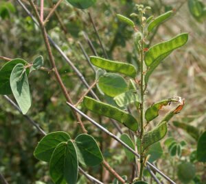 چاسکو ایک پودے کا بیج ہے جو مثلث شکل کا ہوتا ہے، اور چکنا و ملائم ہوتا ہے۔ ایک جھاڑی دار، چھوٹی پودینہ نما جڑی بوٹی ہے، جو اکثر خشک اور نیم خشک علاقوں میں پیدا ہوتی ہے۔ تنا: پودا 30 سے 60 سینٹی میٹر تک بلند ہوتا ہے۔ تنا باریک اور شاخ دار ہوتا ہے۔اس کے پتے جوڑے دار پتے ہوتے ہیں، ہر جوڑے میں 6 سے 12 چھوٹے بیضوی پتے ہوے ہیں جو ہلکے سبز رنگ کے اور چھونے سے جھک جاتے ہیں (نیم حساسیت کی خصوصیت رکھتے ہیں)۔ اس کے پھول زرد رنگ کے چھوٹے پھول ہوتے ہیں۔ اور پھل لمبے اور باریک پھلیاں ہوتی ہیں جن میں گہرے بھورے رنگ کے بیج ہوتے ہیں۔بیج سخت، چمکدار اور سیاہی مائل بھورے رنگ کے ہوتے ہیں، جن پر نشان ہوتا ہے۔