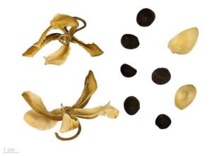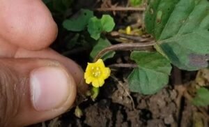 اس کے پتّے گولائی یا گردہ نما (reniform/cordate) شکل میں۔اس کے پھول زرد رنگ کے، چھوٹے ڈنٹھل پر نکلتے ہیں، عموماً ایک سے تین۔اس کا پھل ہرن کھری جیسا، جس میں 2–4 بیج ہوتے ہیں۔بیج سیاہ، چمکدار، جَوار سے بڑے۔۔ اس کے تنے پر روئیں بھی ہوتیں ہیں۔ پھول پیلے رنگ کے۔ یہ پودا بھارت کے کئی علاقوں اور ٹراپیکل ایشیا، افریقہ میں بھی عام ہے