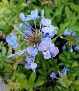 - Plumbago auriculata (Cape leadwort) ۔ زیادہ تر نیلے یا آسمانی نیلے پھول۔