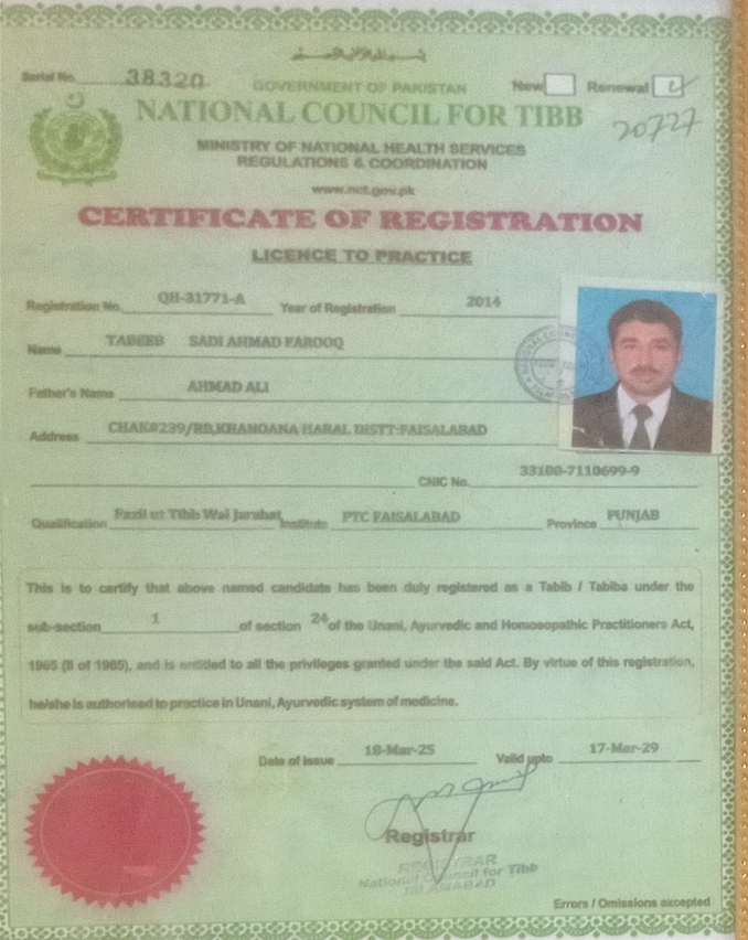 About “Hakeem Sadi Ahmad farooq”