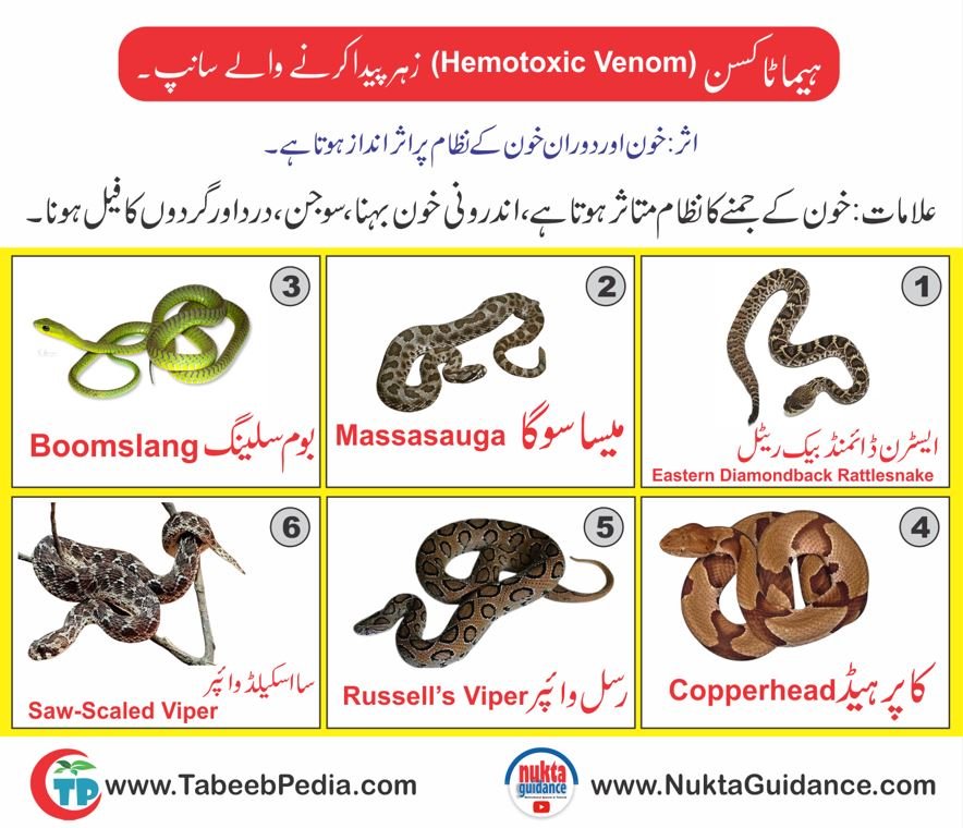 ہیماٹوکسن (Hemotoxic Venom)زہر پیدا کرنے والے سانپ