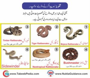 5 | رسل وائپر(Russell’s Viper) | جنوبی ایشیا کا مشہور زہریلا سانپ۔زہر خون میں رکاوٹ اور اندرونی سوجن و فالج پیدا کرتا ہے۔ |